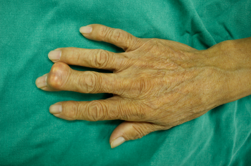 张扬(化名)是一位七十高龄的退休老人家,本应在家享清福的张伯却被“痛风石”缠身近半年,日常生活受其影响寝食难安。患“痛风石”近半年时间中,张伯右中指出现肿物且持续性增大,间歇性出现疼痛不适,在进行药物治疗后缓解了一些疼痛感,在朋友的介绍下来广州和平骨科医院就诊,希望能解除病痛回归正常生活。