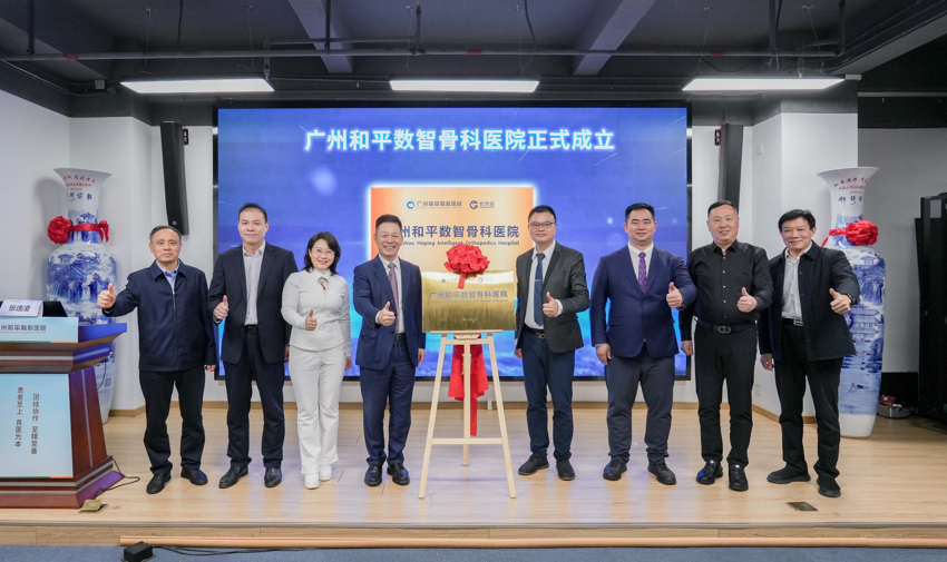 随后,与会领导及嘉宾共同为广州和平数智骨科医院揭牌,标志着医院正式迈入“数智化 + 精准医疗”的全新发展阶段。